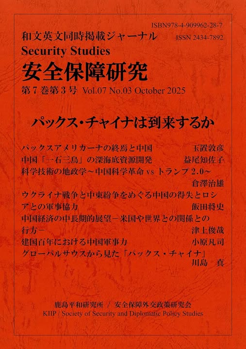 『安全保障研究』第7巻第3号、2025年10月に小論「グローバル・サウスから見た『パックス・チャイナ』」が掲載されました。 2025 9/29 著書│books 2025年9月29日 2025年9月29日 『安全保障研究』第7巻第3号、2025年10月に小論「グローバル・サウスから見た『パックス・チャイナ』」が掲載されました。 川島真「グローバル・サウスから見た『パックス・チャイナ』」『安全保障研究』第7巻第3号、2025年10月。 著書│books URLをコピーしました! URLをコピーしました! 夏の集中講義、4単位分、28コマの講義が終わりました。 『外交』93号が刊行されました。「グローバル・サウスから見た戦争とと秩序」を寄稿しました。
