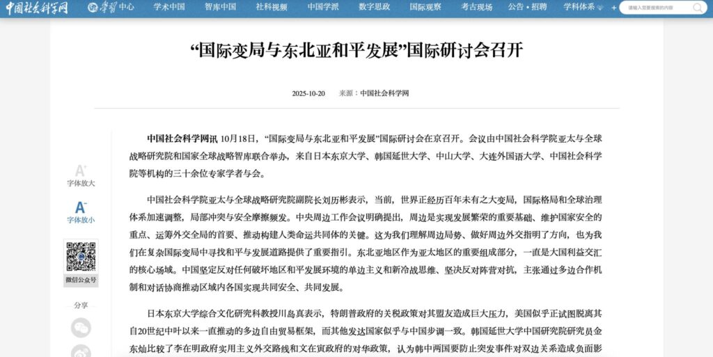 2025年4月の周辺工作会議の影響で東アジア情勢、日中関係も周辺工作の対象、それも大国関係が強く影響する地域での工作対象という位置付けが与えられていることがよくわかりました。もちろん、間も無く成立する新政権のことにも多くの言及がありました。
