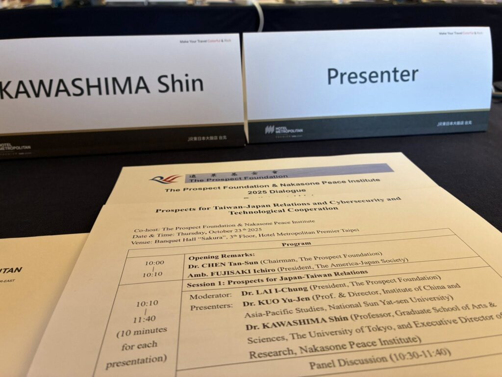 中曽根平和研と台湾の遠景基金会との日台フォーラムに参加、報告しました。サイバーや経済安保など広範な問題について議論でき有意義でした。 2025 10/25 登壇│talks 2025年10月25日 2025年10月25日 中曽根平和研と台湾の遠景基金会との日台フォーラムに参加、報告しました。サイバーや経済安保など広範な問題について議論でき有意義でした。 登壇│talks URLをコピーしました! URLをコピーしました! 『産経新聞』の「論壇時評』で『VOICE』に掲載された小論「習近平と『直接対話』できるリーダーを」についてご紹介いただきました。 富士山会合のパネル討論2「中国リスクをいかにマネージするか」にてパネリストを努めました。