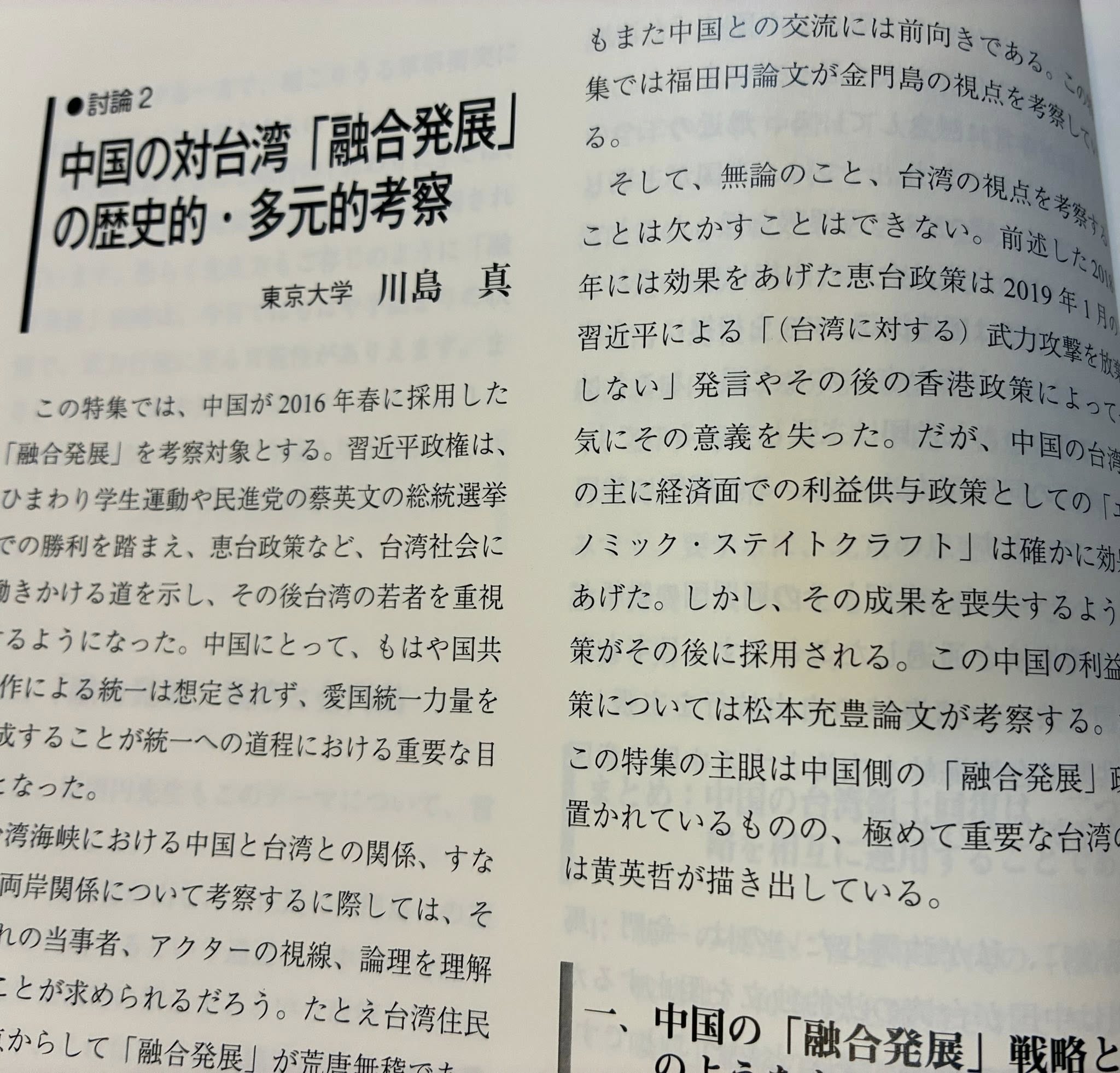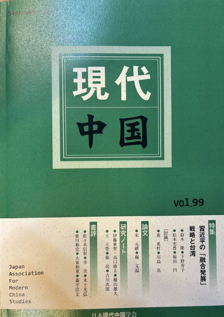 『現代中国』の99号、「習近平政権の『融合発展戦略』と台湾」に小文が掲載されました。 2026 1/01 著書│books 2026年1月1日 2026年1月1日 『現代中国』の99号、特集「習近平政権の『融合発展戦略』と台湾」に小文が掲載されました。 川島真「中国の対台湾「融合発展」の歴史的・多元的考察」『現代中国』第99号、2025年。 著書│books URLをコピーしました! URLをコピーしました! 第41回大平正芳記念賞授賞式でのスピーチ内容が掲載されました。