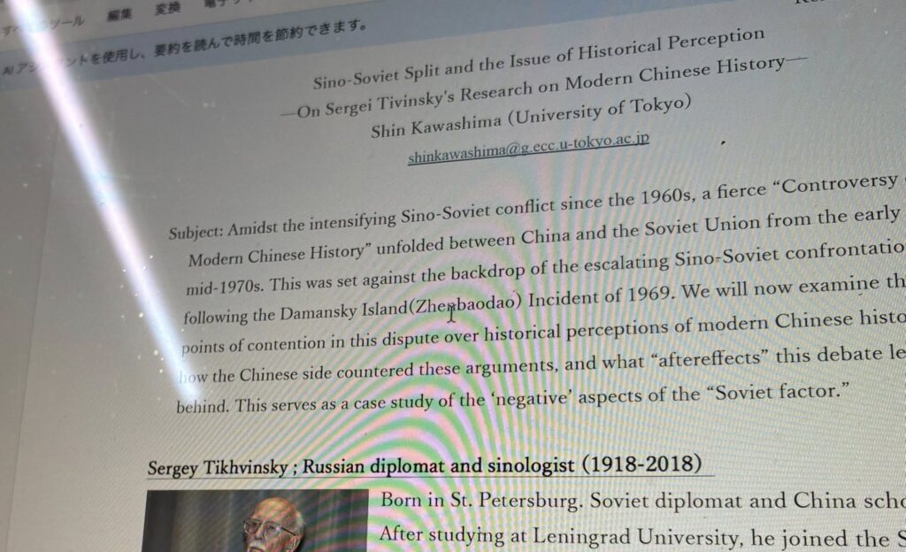 招聘したハンガリーの冷戦史家のヴァモス教授のお話をうかがい、共同研究メンバーがそれぞれ報告を行いました。私は、1970年代の中ソ対立、特にソ連のチフビンスキーの中国近代史言説に対する中国からの反発、日本の学界の反応などについて簡単な話をしました。