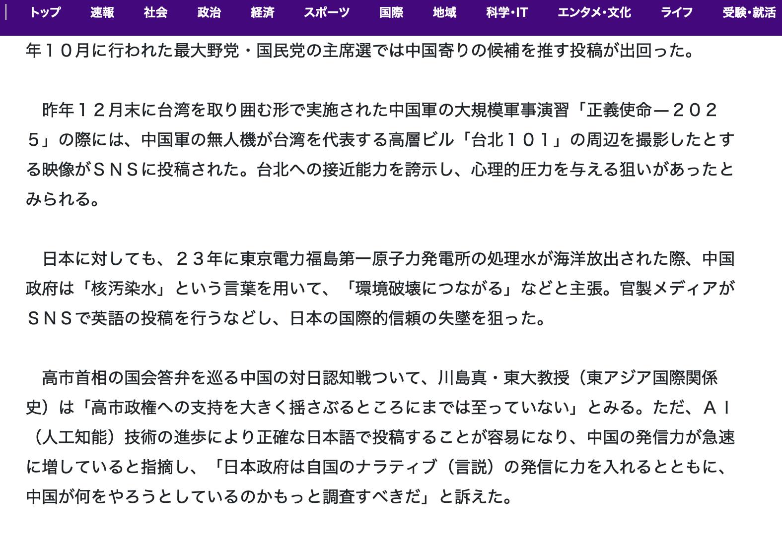 3月23日の讀賣新聞にコメントが掲載されました。 2026 3/23 掲載│media 2026年3月23日 2026年3月23日 3月23日の讀賣新聞にコメントが掲載されました。「中国の対日批判「沈黙の6日間」、一転し態度硬化…高市首相答弁を習近平氏が問題視」 掲載│media URLをコピーしました! URLをコピーしました! 【4月2日】韓国のセジョン(世宗)研究所のSejong National Strategy Forumに登壇することになりました。 South China Morning Post にコメントが掲載されました。